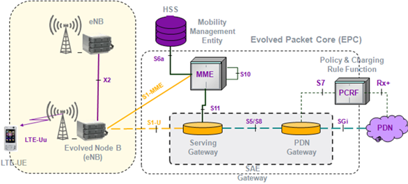 L'architecture du réseau cœur du LTE est composée de 3 principaux éléments :